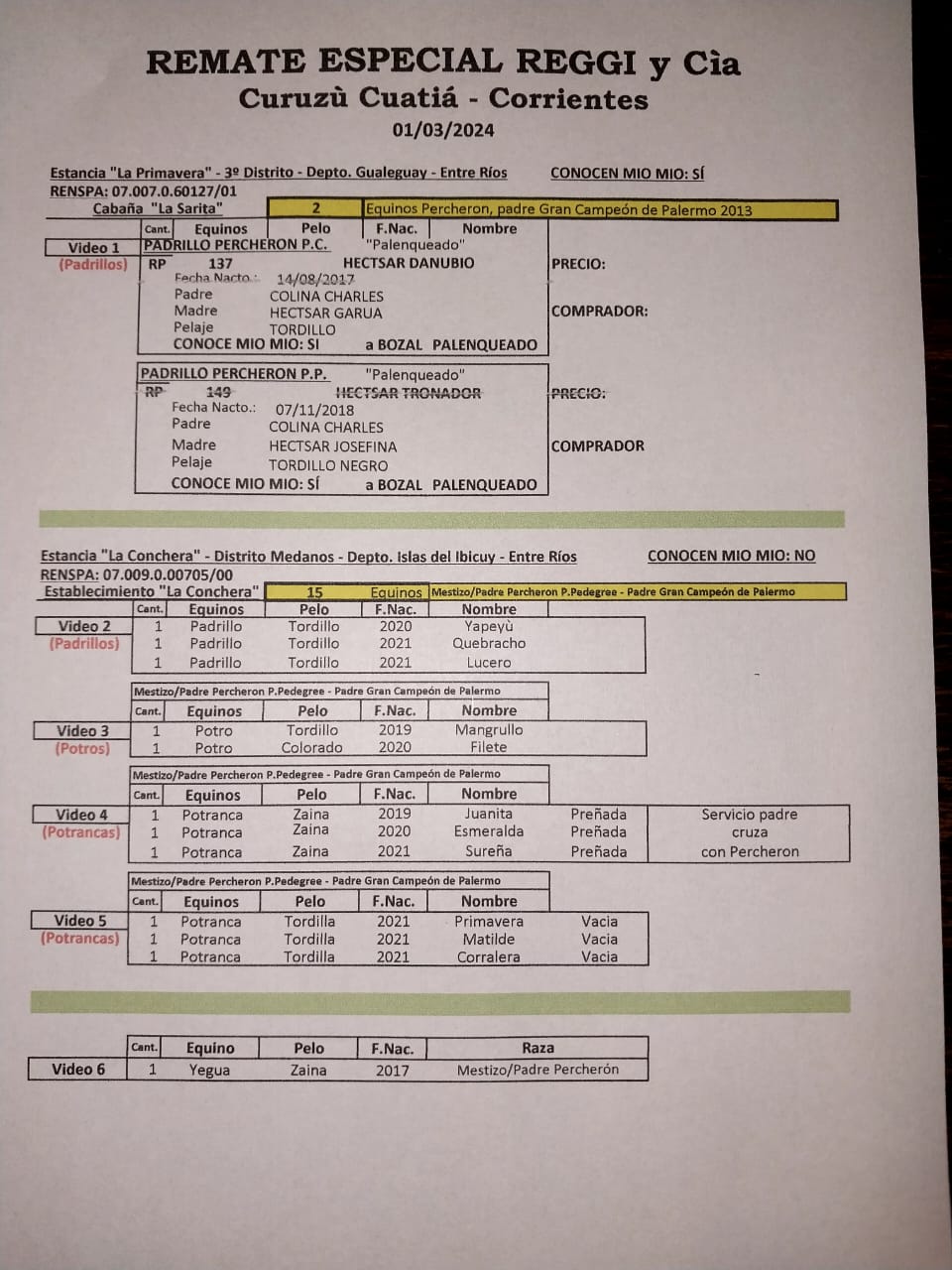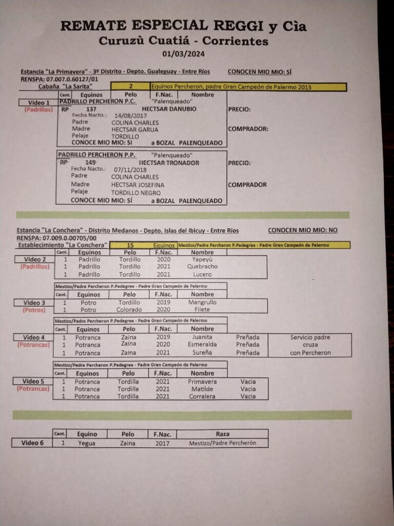 Remate Físico y StreamingPor SRCC / 28/02/2024 Remate Yeguarizos y Vientres La Carreta S.S. y La Conchera de Berisso Inicia 20:00 HS Predio SRCC.